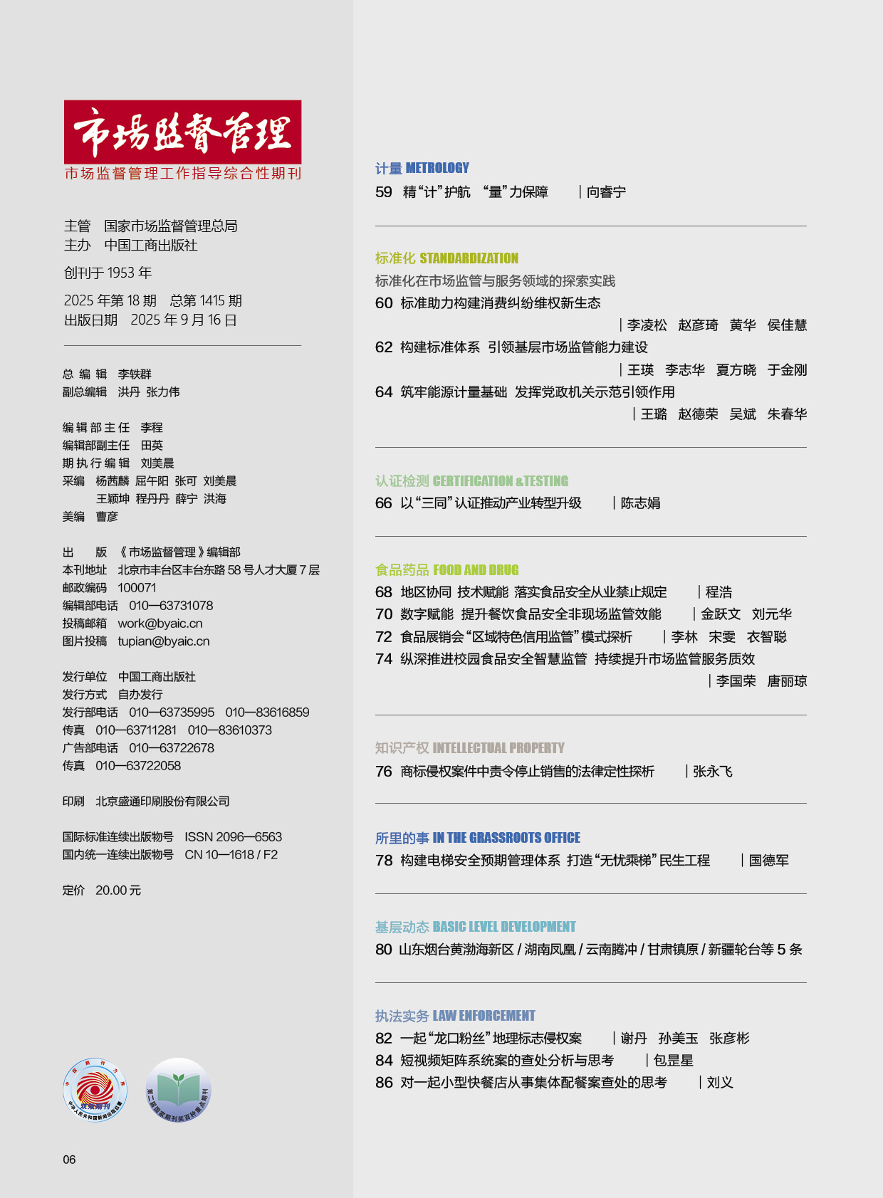 1953年创刊的《工商行政管理》杂志,现已经更名为《市场监督管理》,曾被新闻出版总署认定为双效期刊,荣获“第二届国家期刊百种重点期刊”称号。《市场监督管理》杂志专业、权威、实用,在市场监管系统内有着广泛而深厚得影响力。杂志传递总局权威声音,传播系统主流观点;研究市场监管重热难点工作,报道基层典型经验。总局历任领导和系统广大读者都曾经对杂志给予高度评价。