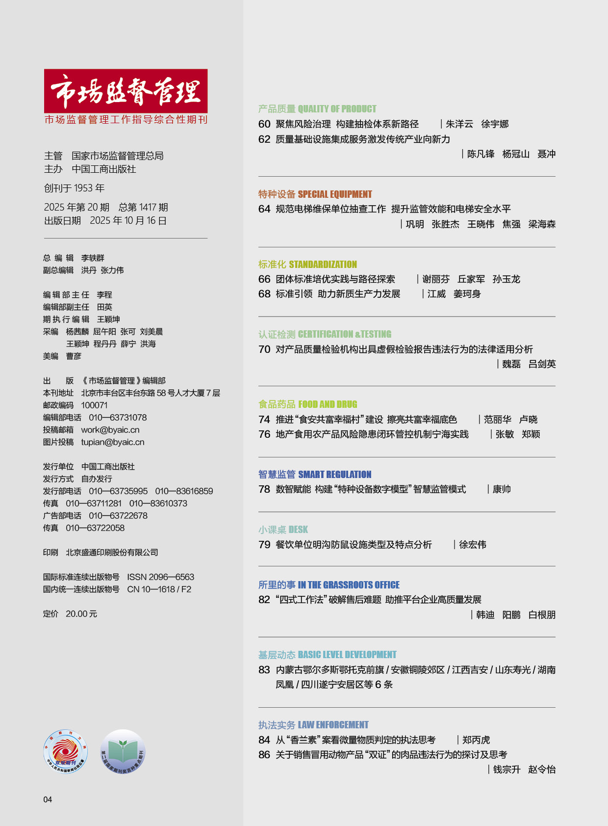 1953年创刊的《工商行政管理》杂志,现已经更名为《市场监督管理》,曾被新闻出版总署认定为双效期刊,荣获“第二届国家期刊百种重点期刊”称号。《市场监督管理》杂志专业、权威、实用,在市场监管系统内有着广泛而深厚得影响力。杂志传递总局权威声音,传播系统主流观点;研究市场监管重热难点工作,报道基层典型经验。总局历任领导和系统广大读者都曾经对杂志给予高度评价。