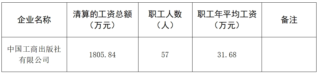 2023年中国工商出版社有限公司工资分配信息披露